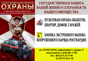 ОВО по Пожарскому муниципальному округу — филиал ФГКУ УВО ВНГ России по Приморскому краю» предоставляет следующие услуги охраны на договорной основе имущества граждан и организаций: